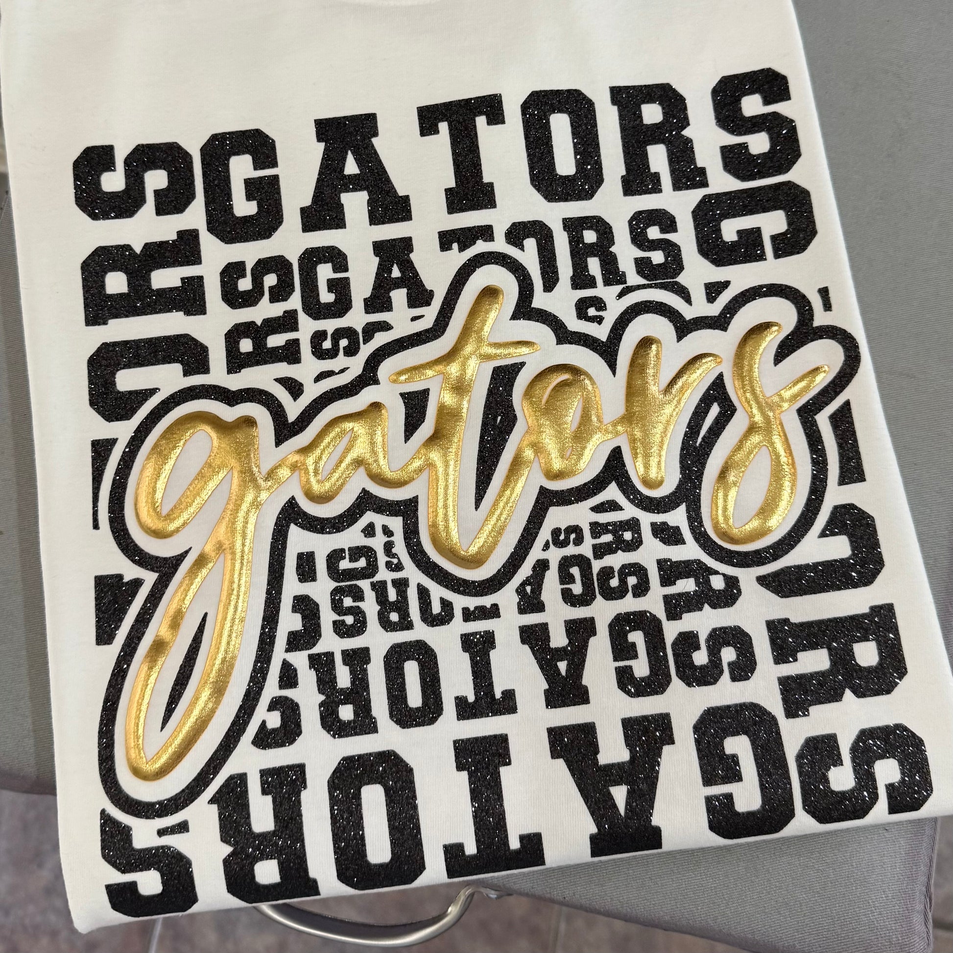 BLACK GLITTER AND GOLD PUFF GATORS TEE & SWEATSHIRT