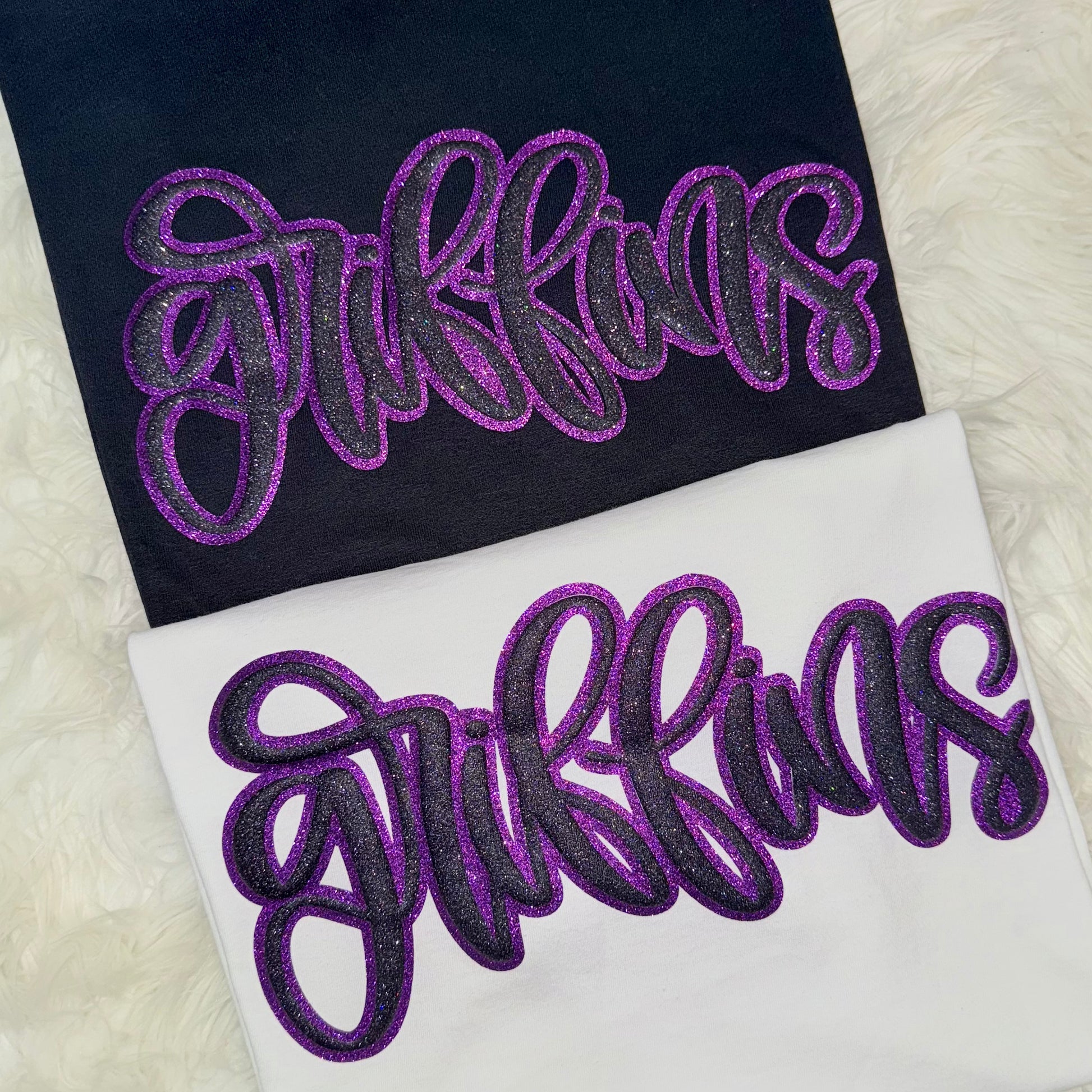 GRIFFINS PURPLE GLITTER AND BLACK GLITTER PUFF TEES & SWEATSHIRTS