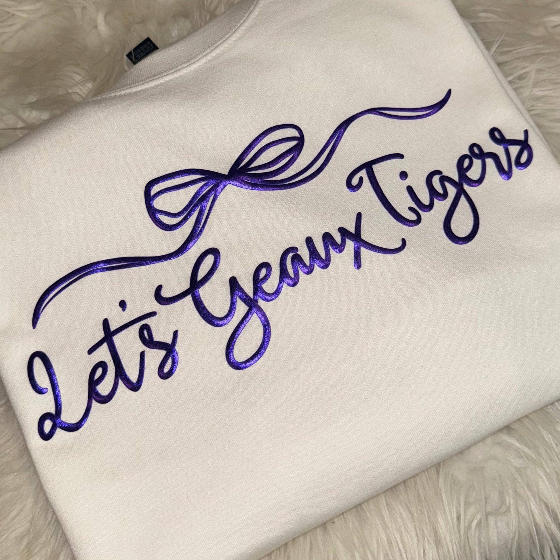 METALLIC PUFF LET.S GEAUX TIGERS TEE & SWEATSHIRT